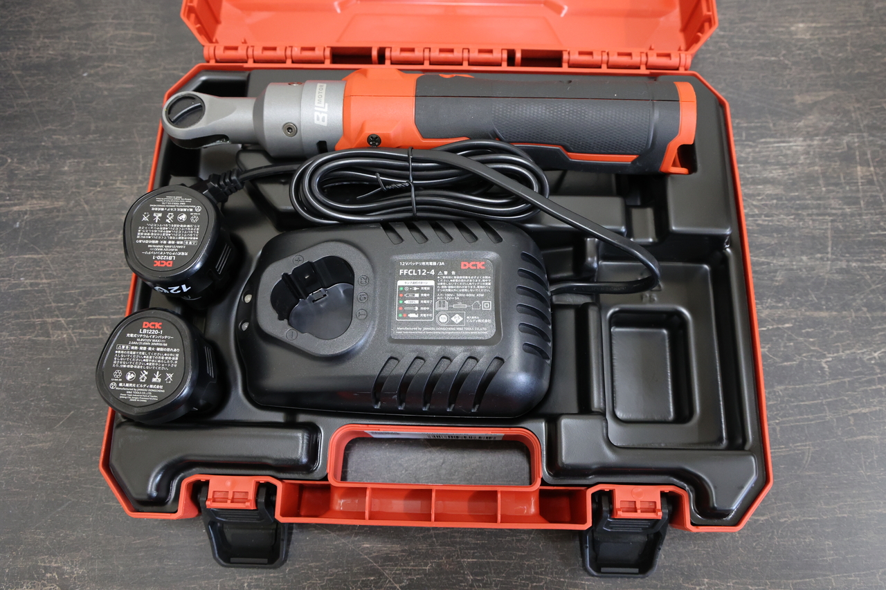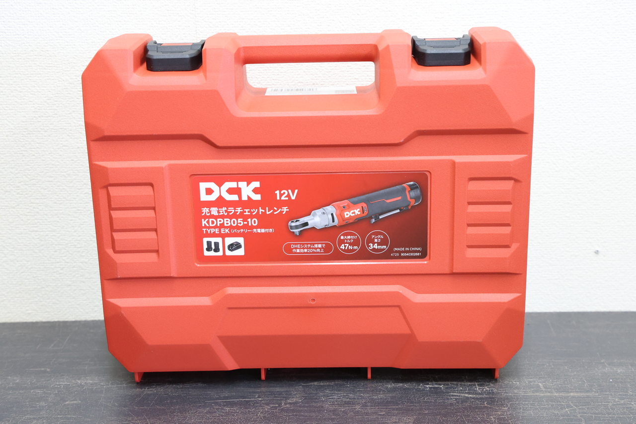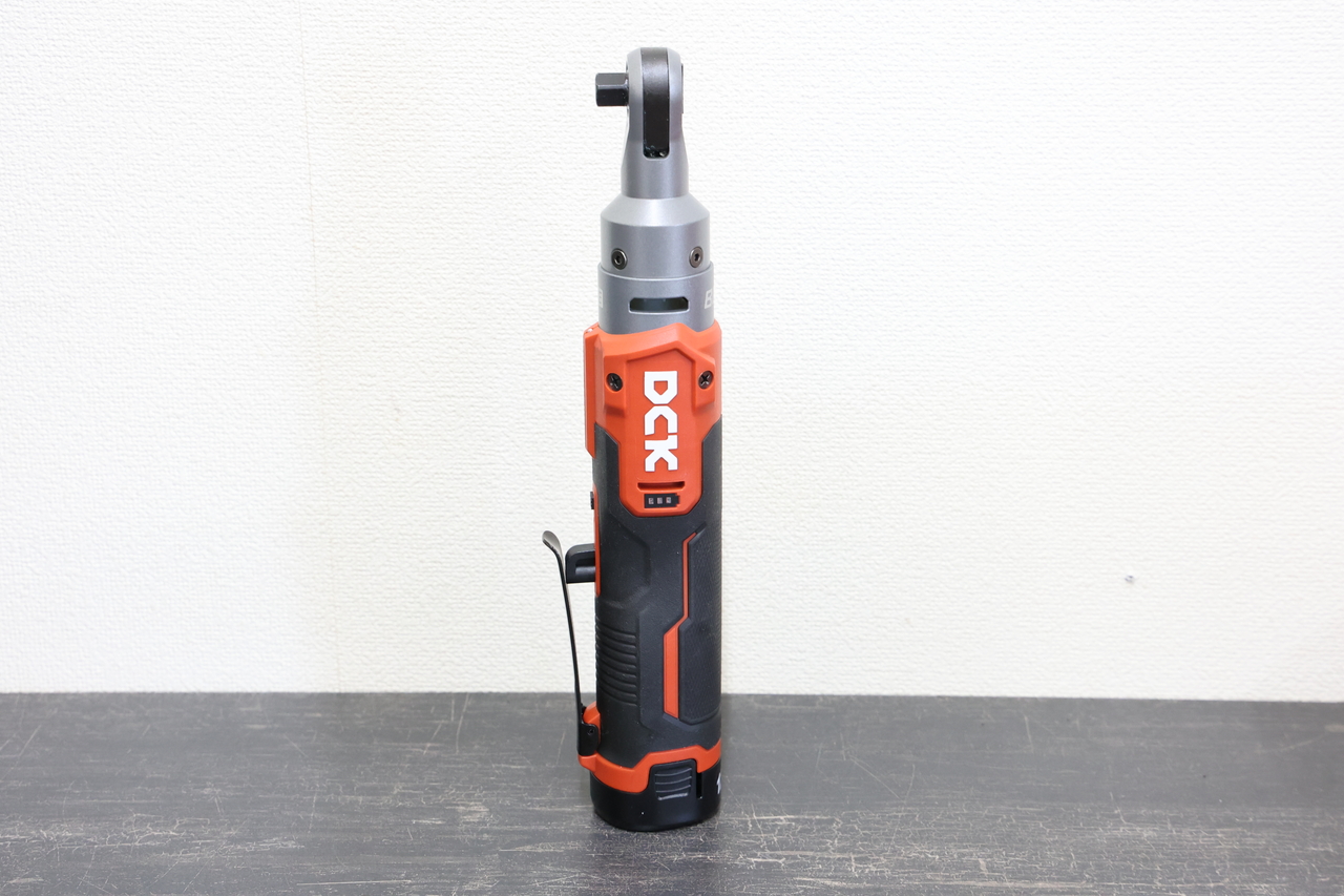 というわけで買ってみたのがDCK KDPB05-10という電動ラチェットレンチ。12Vバッテリーシリーズの商品だが、これはマキタで言うところの10.8Vシリーズと同等。マキタが定格電圧で書いてあるのに対して、DCKは100%充電時に近い状態での電圧を記載しているのと思う。ちなみにデウォルトも日本使用と本国仕様で記載電圧が異なる。おそらくどちらも定格3.6Vバッテリーを3本直列で繋いだバッテリーを使用しているはず。
