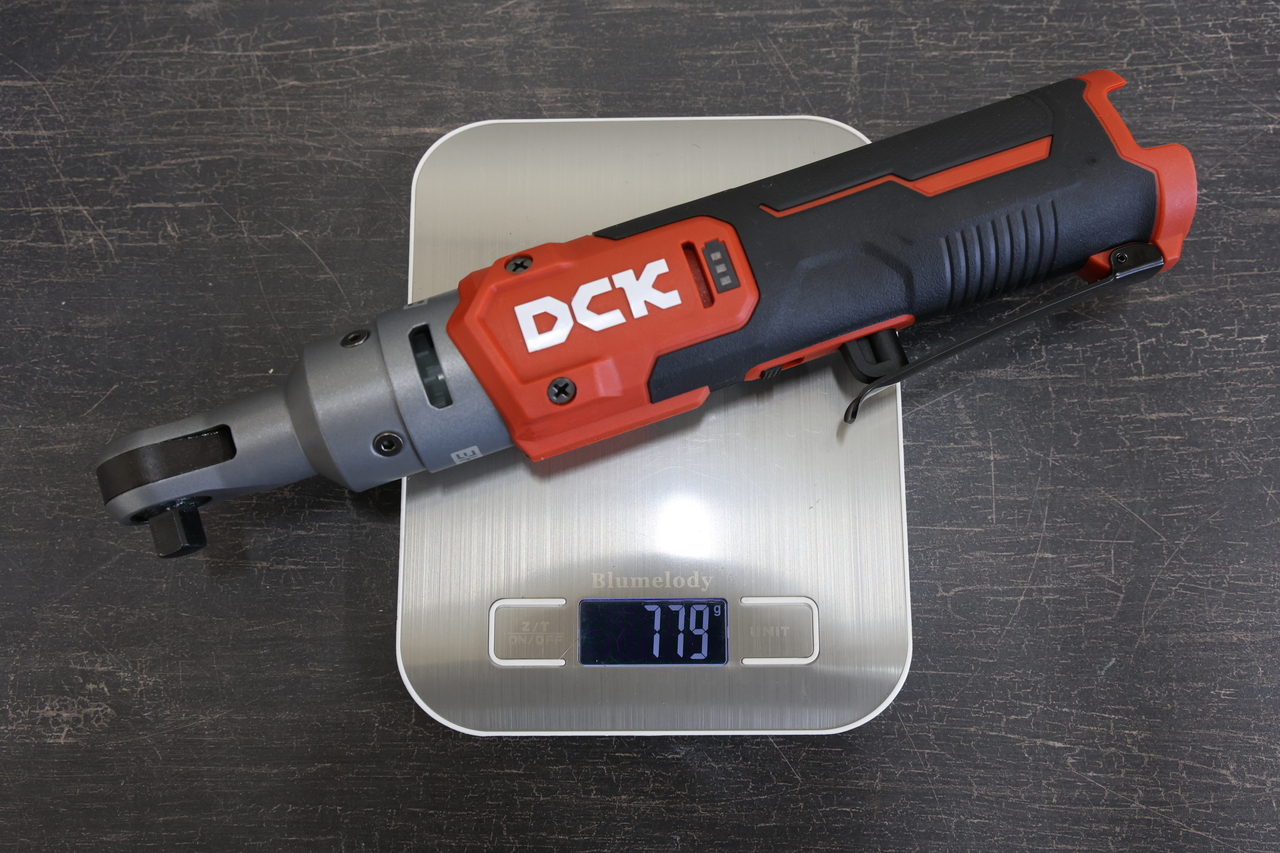 実測で本体重量は779g、バッテリーが178gで、合わせて量ると958gだった。1kgを切っているのはこの手の電動ラチェットレンチとしては軽量な部類だと思う。