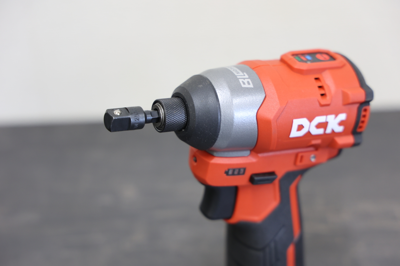 今回買ったのがDCKの電動インパクトドライバーKDPL04-8。本当は3/8ソケットのインパクトレンチが欲しいのだが、残念ながらラインナップになかった。なのでアダプターを付けてインパクトドライバーをインパクトレンチとして使うことにした。